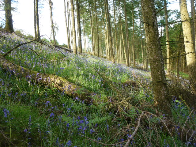 Abundant bluebells have spread in larch thinned since 2010